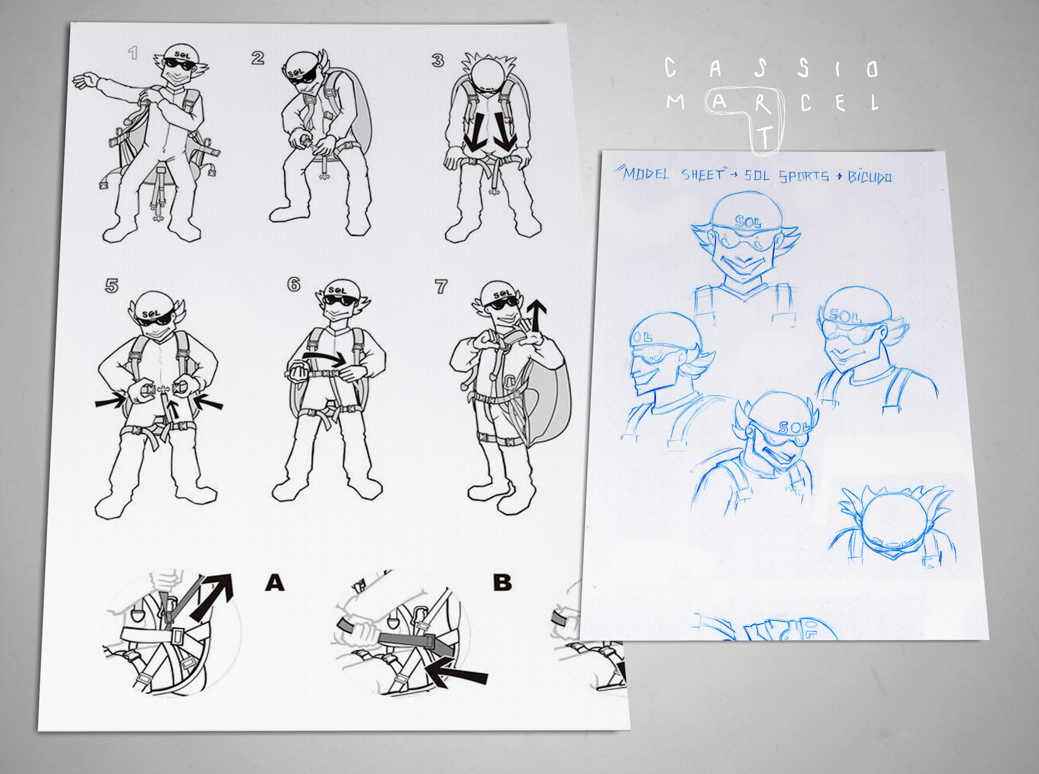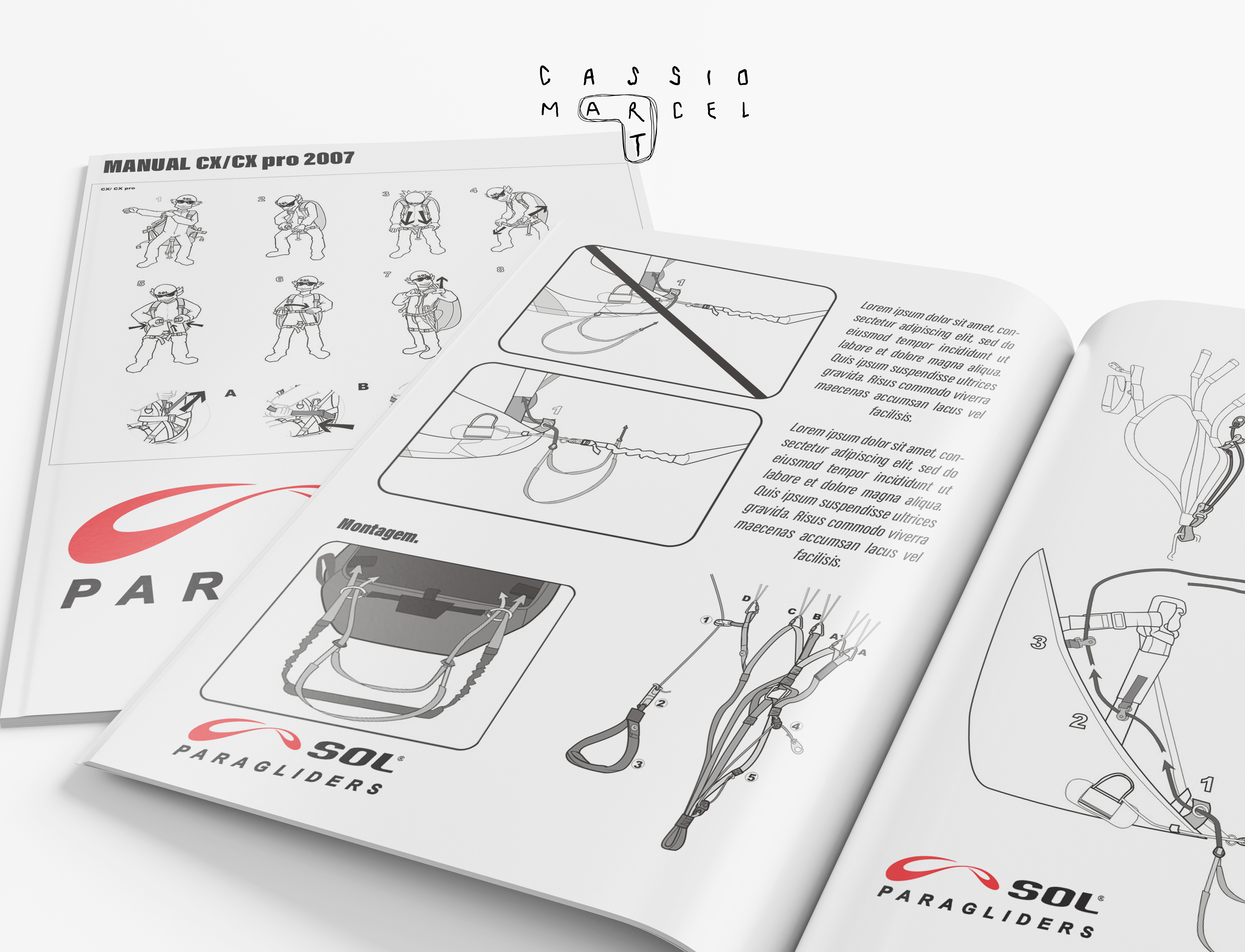 Em 2007, a Sol Sports/Paragliders me convidou para desenvolver um personagem e criar alguns manuais de montagem para seus produtos. O objetivo era apresentar de forma didática os procedimentos para montar parapentes, além de explicar os sistemas de regulagem e segurança.