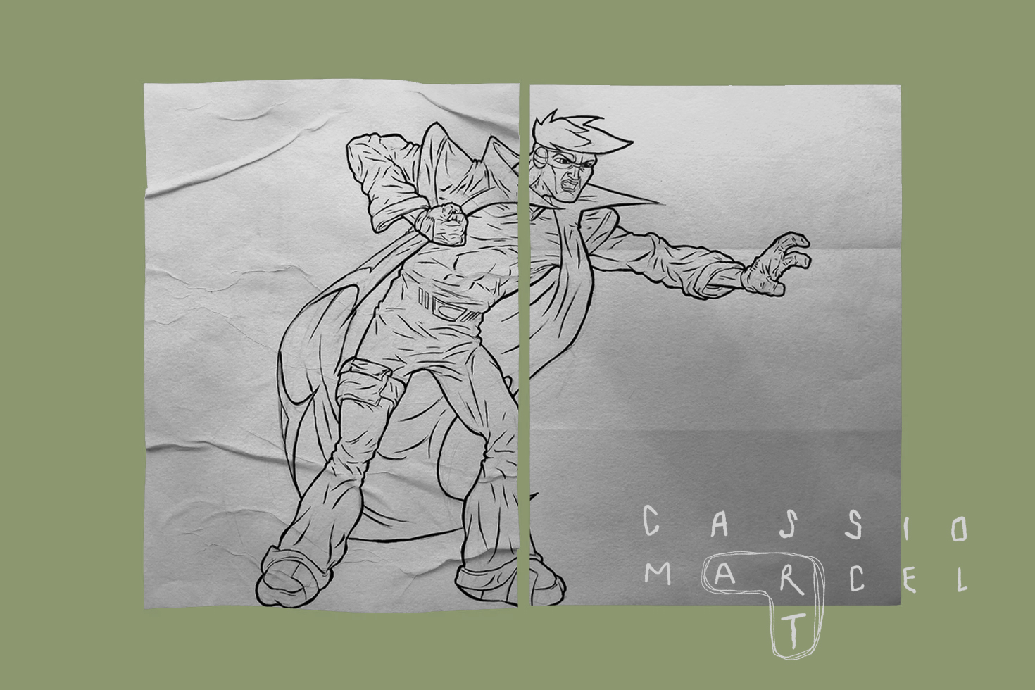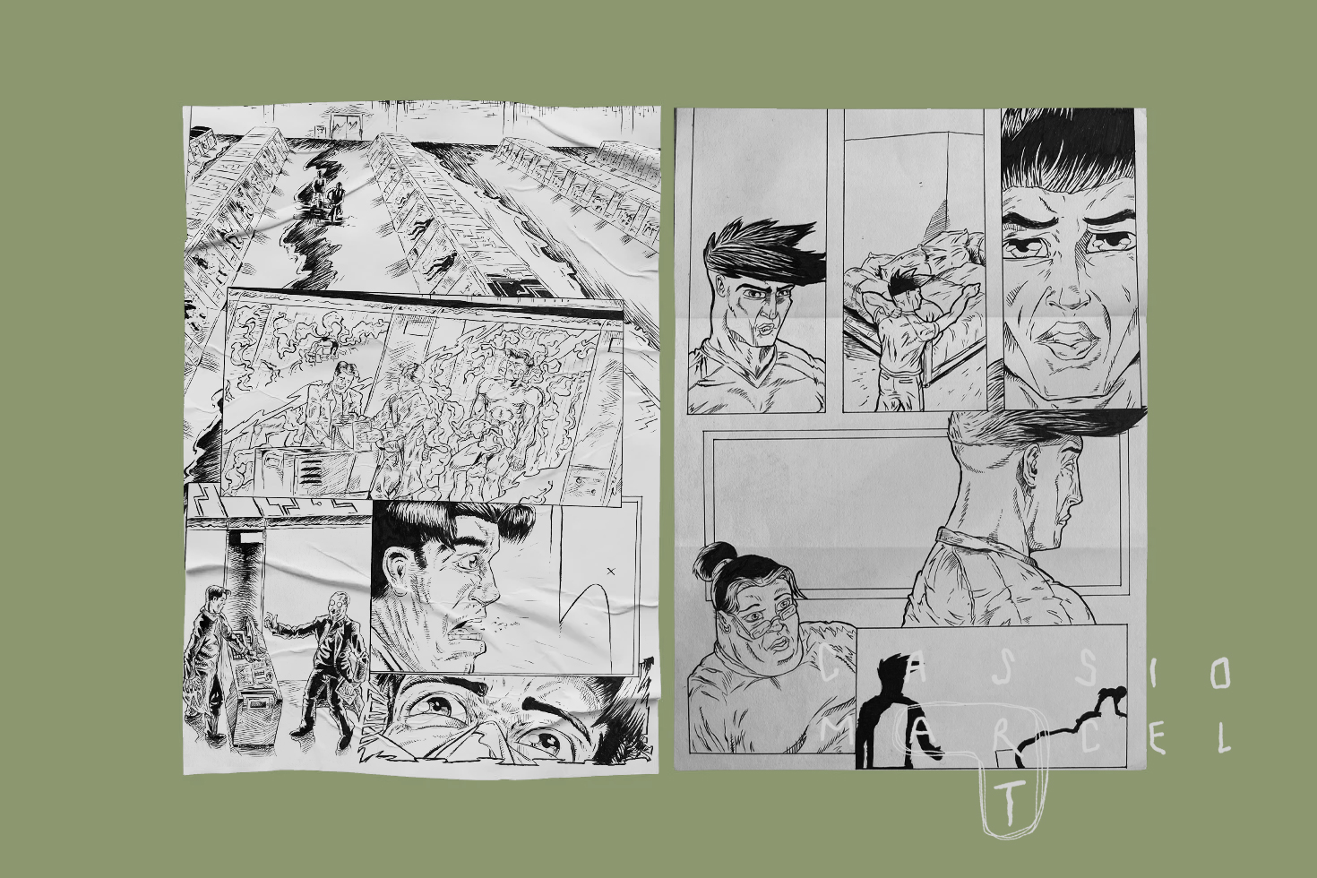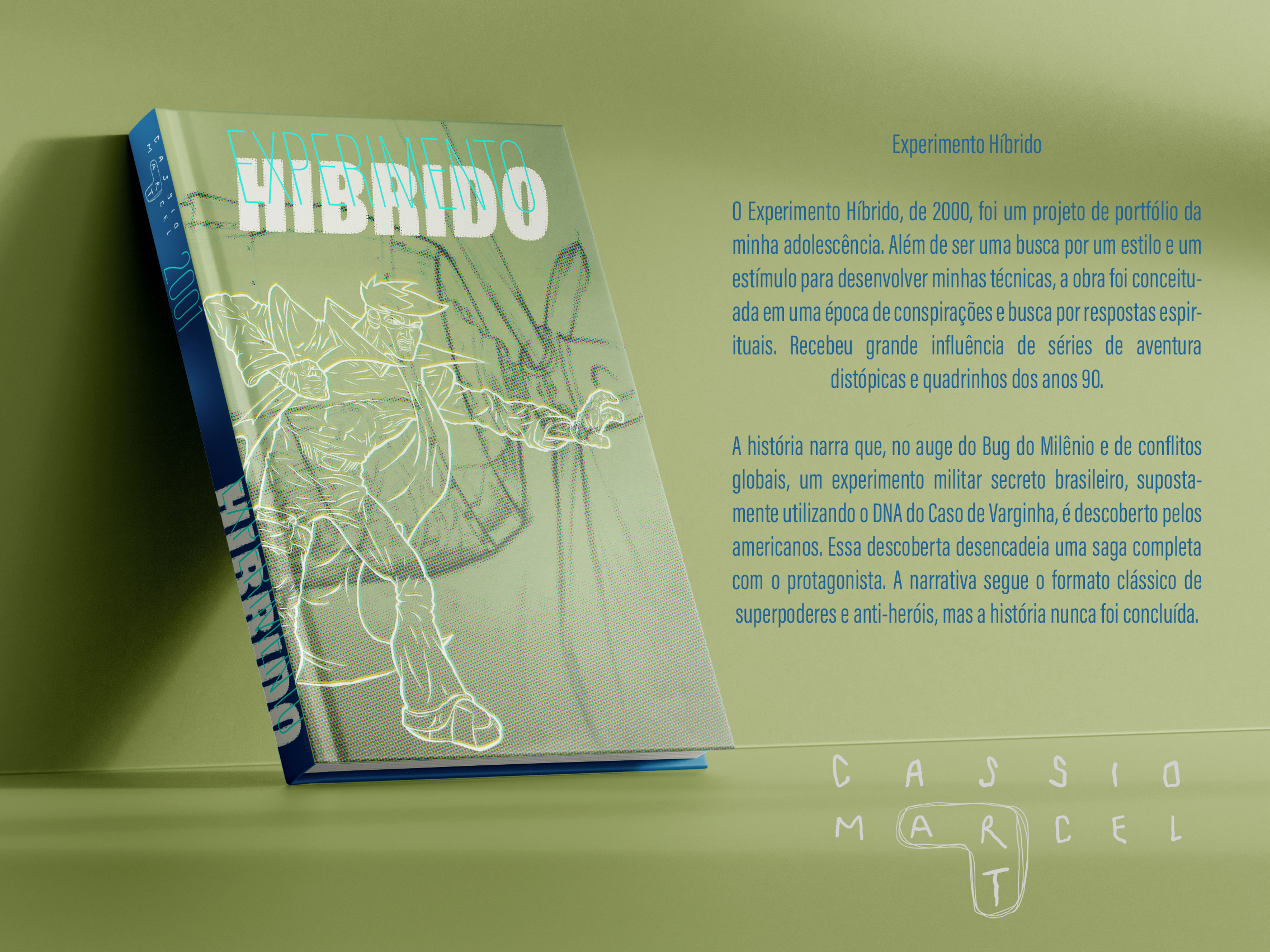 O Experimento Híbrido, de 2000, foi um projeto de portfólio da minha adolescência. Além de ser uma busca por um estilo e um estímulo para desenvolver minhas técnicas, a obra foi conceituada em uma época de conspirações e busca por respostas espirituais. Recebeu grande influência de séries de aventura distópicas e quadrinhos dos anos 90.