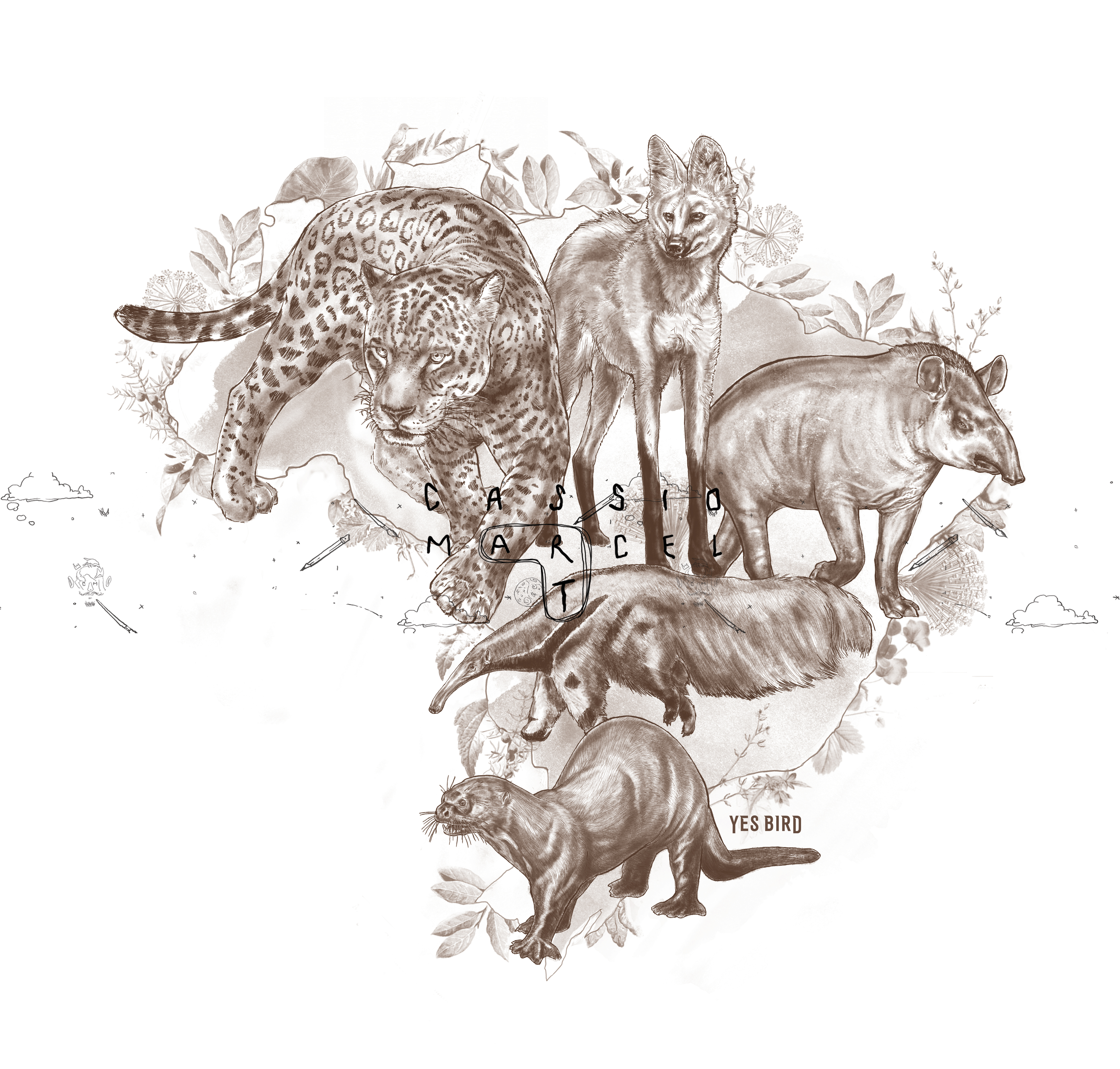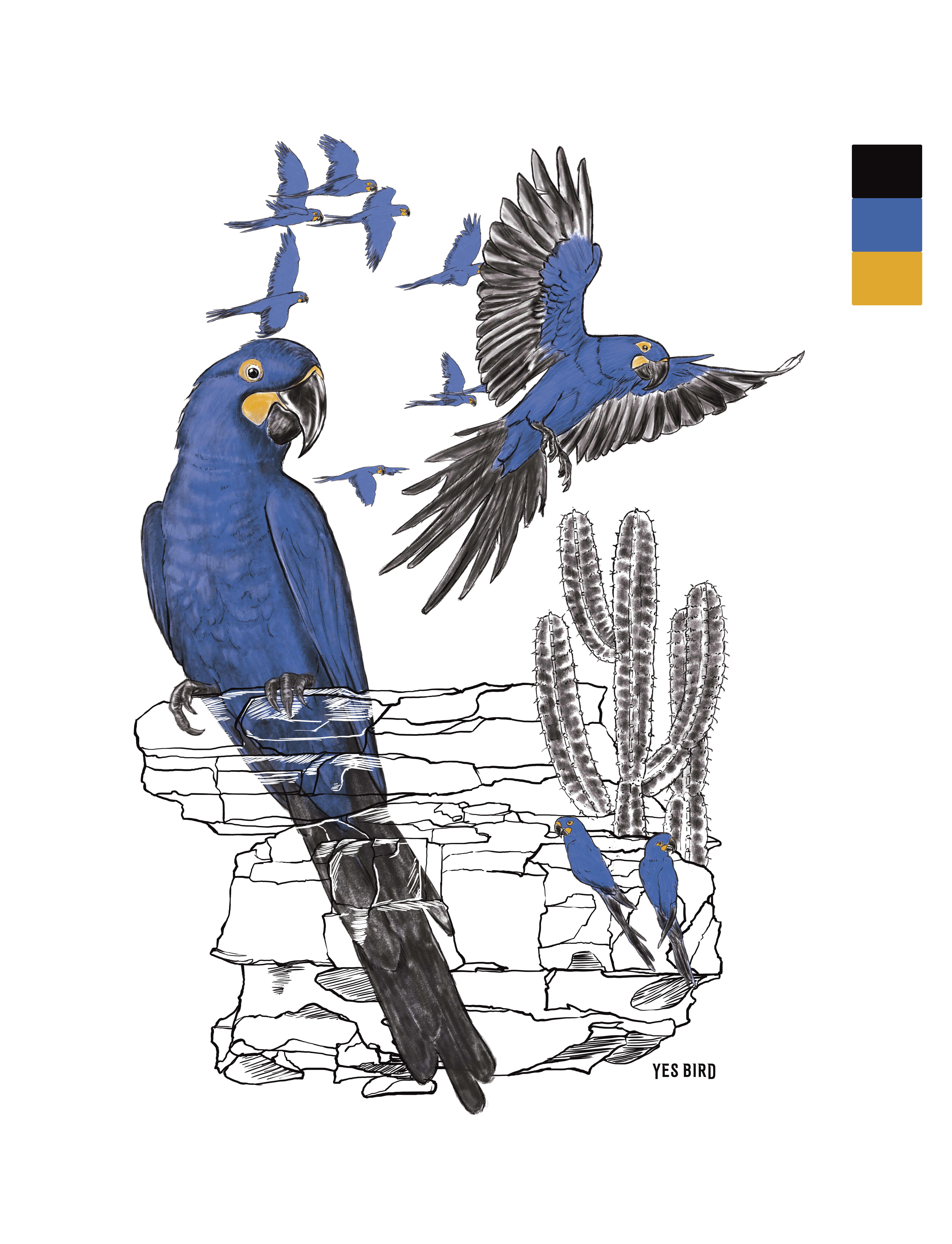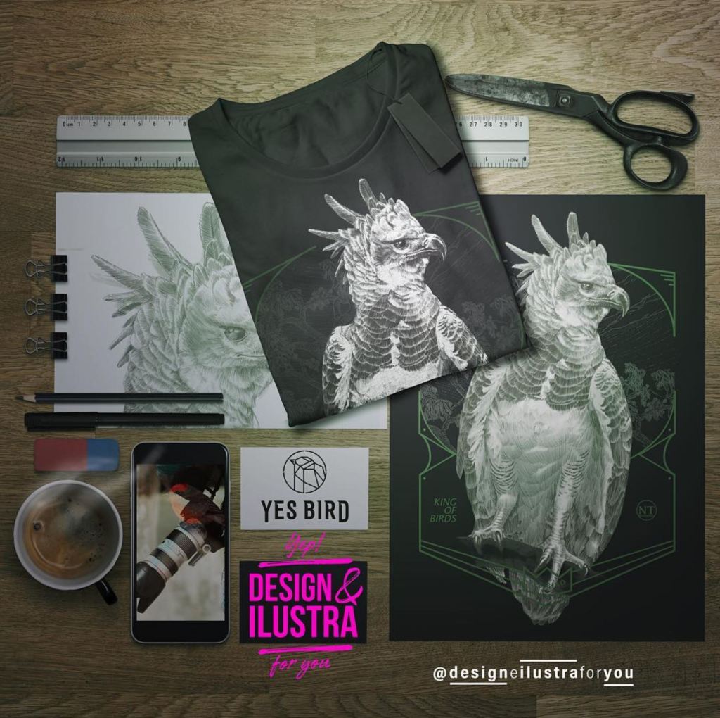 Em 2017, as observadoras da YESBIRD, uma marca de Jaraguá do Sul, me convidaram para criar artes e estampas exclusivas inspiradas na fauna brasileira. Fiquei muito feliz em participar, usando diversas técnicas para as ilustrações: desde o clássico lápis sobre papel e a pintura acrílica, até o toque moderno da arte digital.
